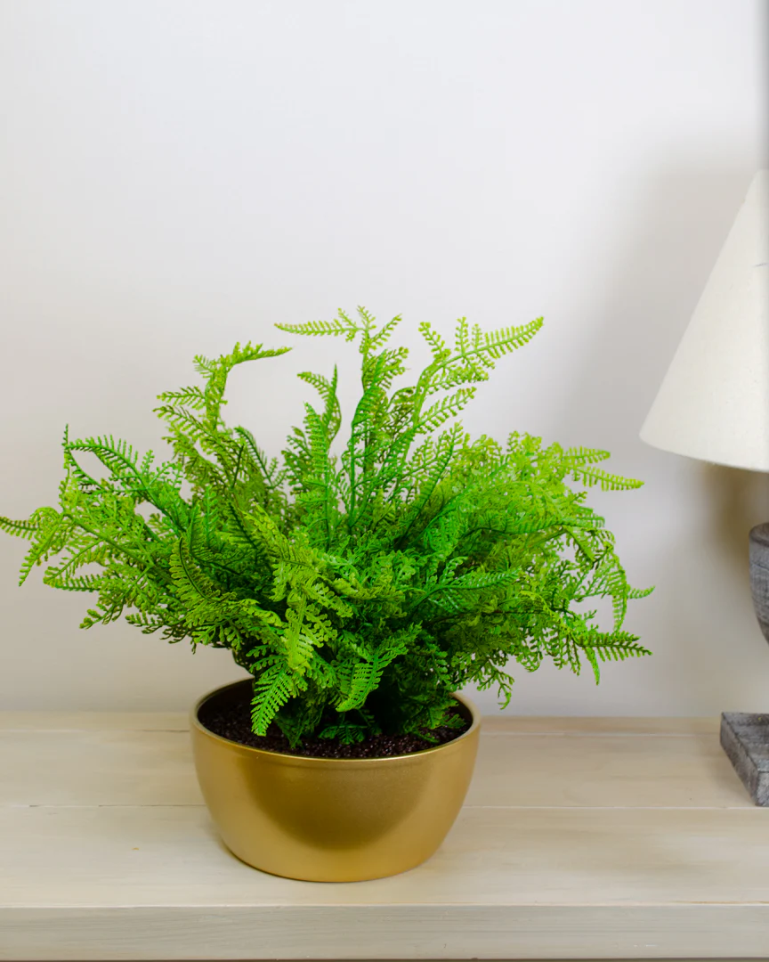 Artificial Forest Fern in Gold Pot