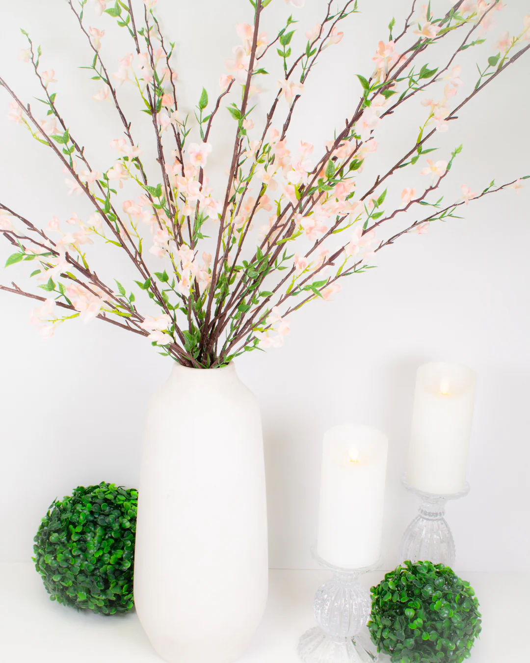 Well, this is an amazing addition to any home this spring! A huge faux branch, adorned with beautiful light pink blossom buds. This branch is so simple to style and will elevate any vase or area in your home to give it a subtle nod to the upcoming season.