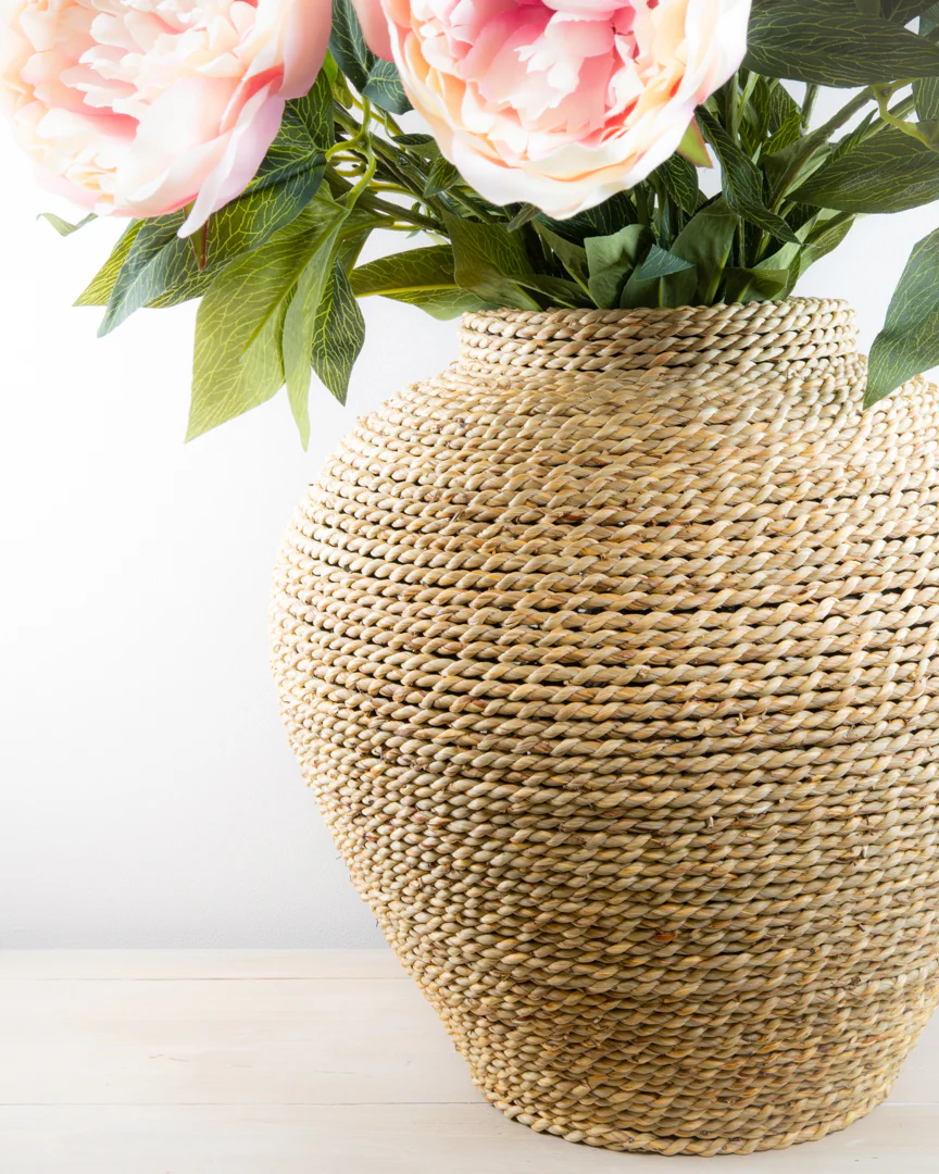 The Hartwell Vase is a beautifully textured piece that brings natural warmth and character to any space. Hand crafted from intricately woven natural fibres, its gently curved silhouette creates a soft, organic look.